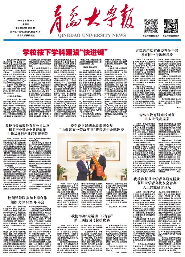 校黨委書記胡金焱親切會(huì)見(jiàn)“山東省五一勞動(dòng)獎(jiǎng)?wù)隆鲍@得者于金鵬教授
