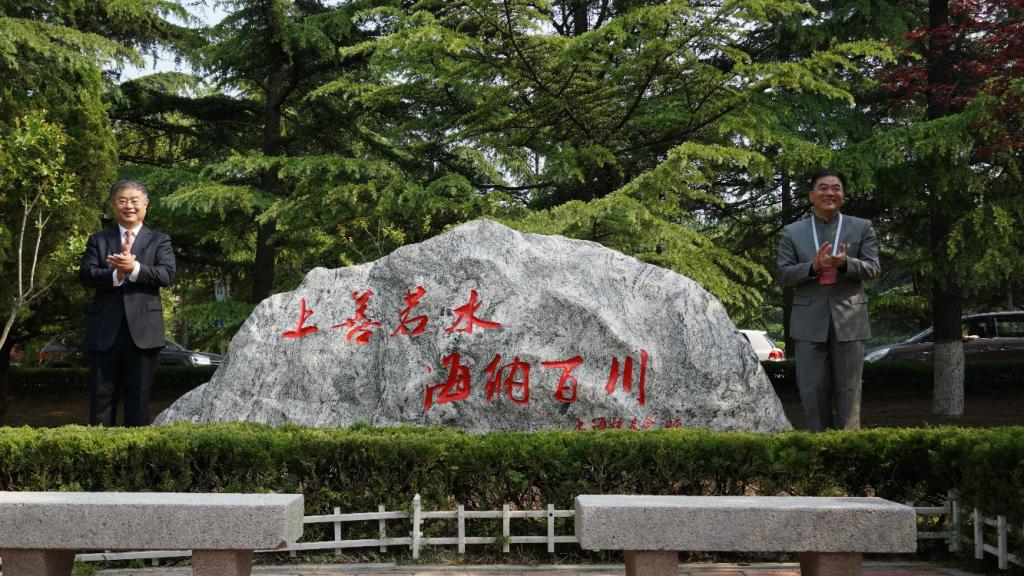 飲水思源、情系母校。在青島大學合并辦學30周年之際,上海校友會向學校捐贈了校園文化石,其上鐫刻有“上善若水 海納百川”八個字。這八個字表達了上海校友對母校堅守為黨育人、為國育才的初心使命,落實立德樹人根本任務,五育并舉,著力引導學生立大志、明大德、成大才、擔大任,提高人才培養質量工作的認可,表達了全體上海校友對母校的美好祝愿。