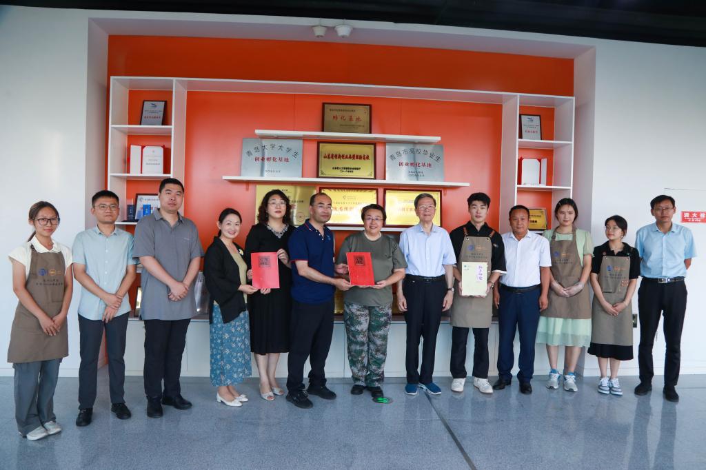 會前,孔偉金陪同周靜一行參觀了學校非物質文化研究中心、分析測試中心、慧創空間和國家大學生文化素質教育基地(浮山書院)。周靜一行在慧創空間品嘗了創業學生們制作的咖啡甜點,在國家大學生文化素質教育基地詳細了解了浮山書院的人才培養模式,并贈送資料留念。