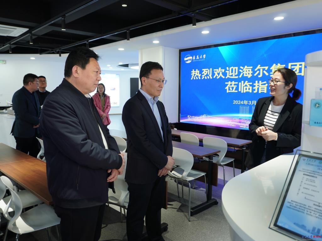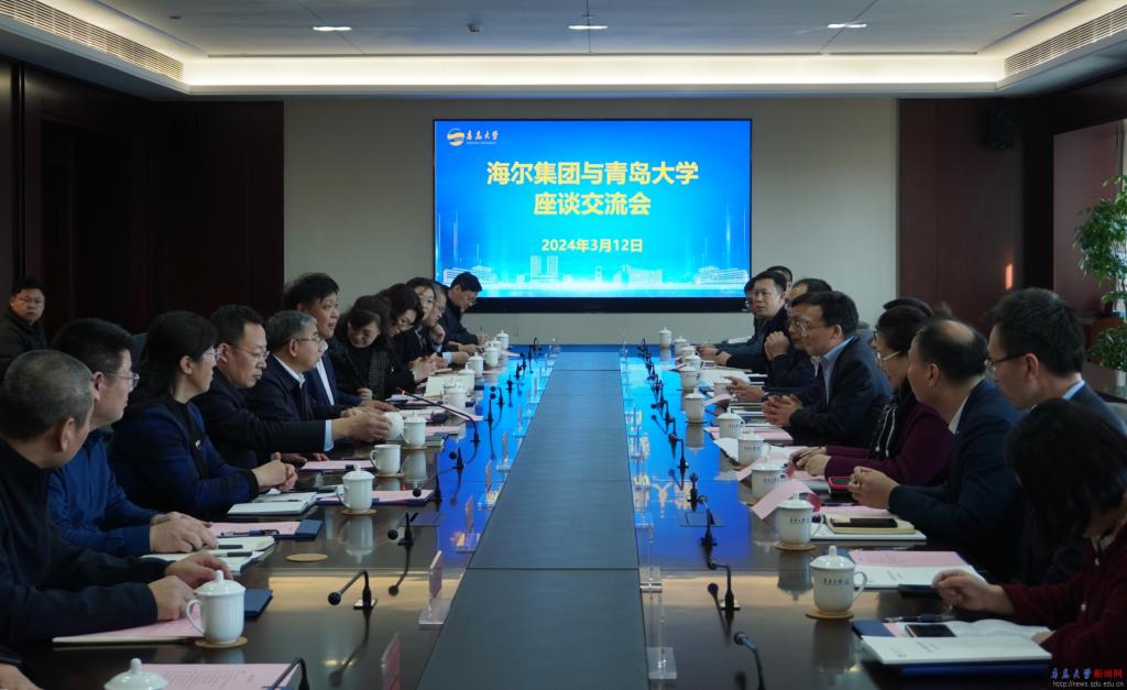 胡金焱對(duì)海爾集團(tuán)一行表示熱烈歡迎,詳細(xì)介紹了我校的辦學(xué)定位以及近年來在人才培養(yǎng)、學(xué)科建設(shè)、科學(xué)研究、創(chuàng)新創(chuàng)業(yè)等方面取得的成果和突破。他表示,目前學(xué)校進(jìn)入建設(shè)高水平綜合性研究型大學(xué)新的發(fā)展階段,更要在服務(wù)中找資源,在貢獻(xiàn)中求發(fā)展。青島大學(xué)學(xué)科門類齊全,師資力量雄厚,優(yōu)勢特色突出,與海爾集團(tuán)有著廣闊的合作前景,希望雙方在人才培養(yǎng)、創(chuàng)新創(chuàng)業(yè)、共建平臺(tái)、聯(lián)合攻關(guān)四個(gè)方面深挖合作潛力,做有預(yù)見性、超前性、戰(zhàn)略性布局,開啟全面、深入、高層次戰(zhàn)略合作,攜手推進(jìn)高素質(zhì)人才培養(yǎng),共促雙方高質(zhì)量發(fā)展。