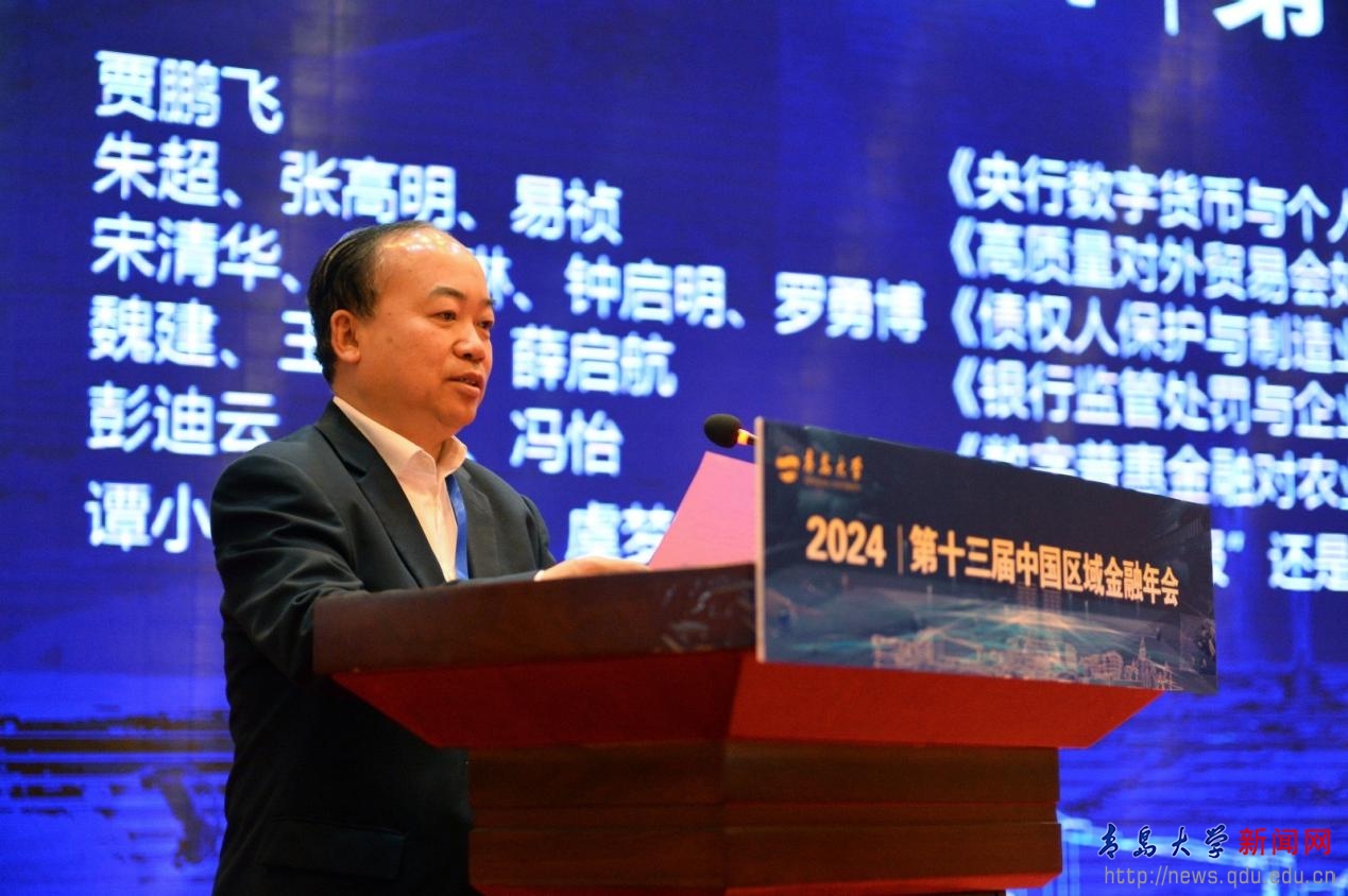 新聞網(wǎng)訊 4月19日至4月20日,由中國區(qū)域金融年會理事會、青島大學和中國區(qū)域經(jīng)濟學會區(qū)域金融專業(yè)委員會聯(lián)合主辦,青島大學經(jīng)濟學院、東北財經(jīng)大學青島金融研究院、青島市金融學會、青島金家?guī)X金融聚集區(qū)管理委員會承辦,《東方論壇—青島大學學報(社會科學版)》協(xié)辦的第十三屆中國區(qū)域金融年會在我校順利召開。校黨委書記胡金焱出席年會并做了題為《簡析做好金融五篇大文章》的主旨演講,副校長李榮貴出席年會致歡迎辭。開幕式由青島大學經(jīng)濟學院院長劉喜華教授主持。