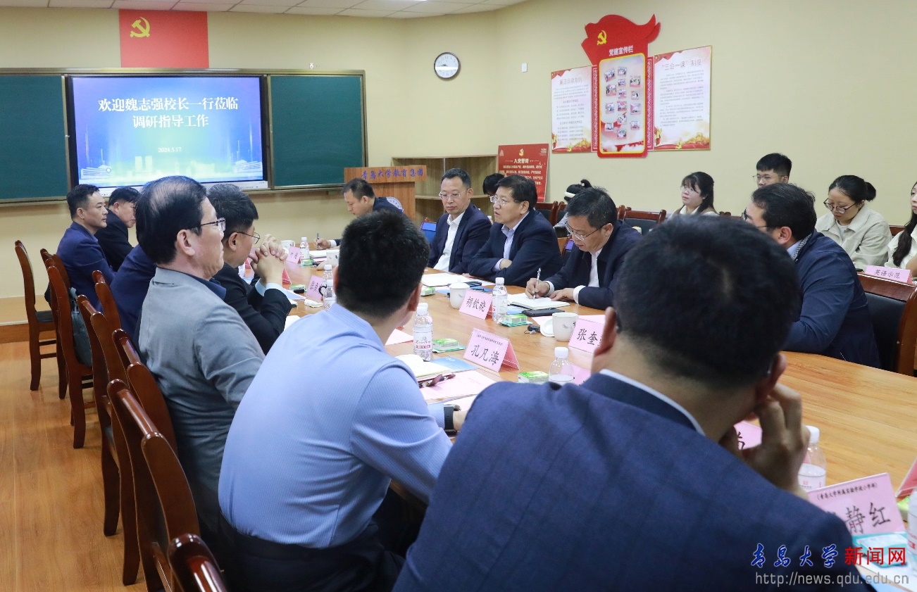 新聞網訊 5月17日上午,校長魏志強到教育集團調研工作,黨委副書記胡欽曉、副校長劉恩賢陪同調研。山東青大教育集團理事長、青島大學教育集團總經理張貞齊主持調研工作座談會。