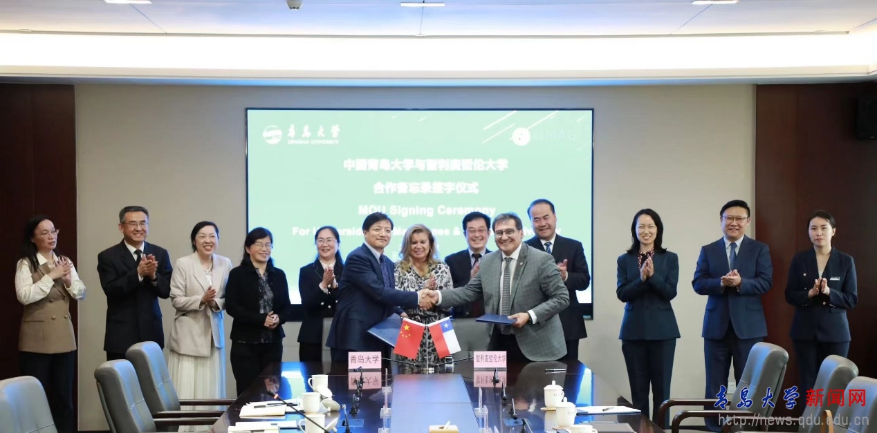 馬里帕尼表示非常高興有機會訪問青島大學,并對青島大學的熱情接待表示感謝。他介紹說,麥哲倫大學距離南極洲約1200公里,是“世界上最南端的大學”,是南極科考的最佳出發地。學校高度重視對南極洲的實地考察研究,關注極地區域的環境變化,現已與中國高校極地聯合研究中心建立合作關系。他表示,年輕的智利與擁有悠久歷史的中國,他們學校所在的小城蓬塔阿雷納斯市與國際化大都市青島市,麥哲倫大學和綜合實力以及規模都非常突出的青島大學,可以成為“小手拉大手”合作的典范。希望雙方充分利用各自優勢,在風力發電、清潔能源、人工智能、氣候變化、醫療健康等領域開展進一步合作,以務實的合作助力人才培養,以堅實的友誼推進兩國關系。