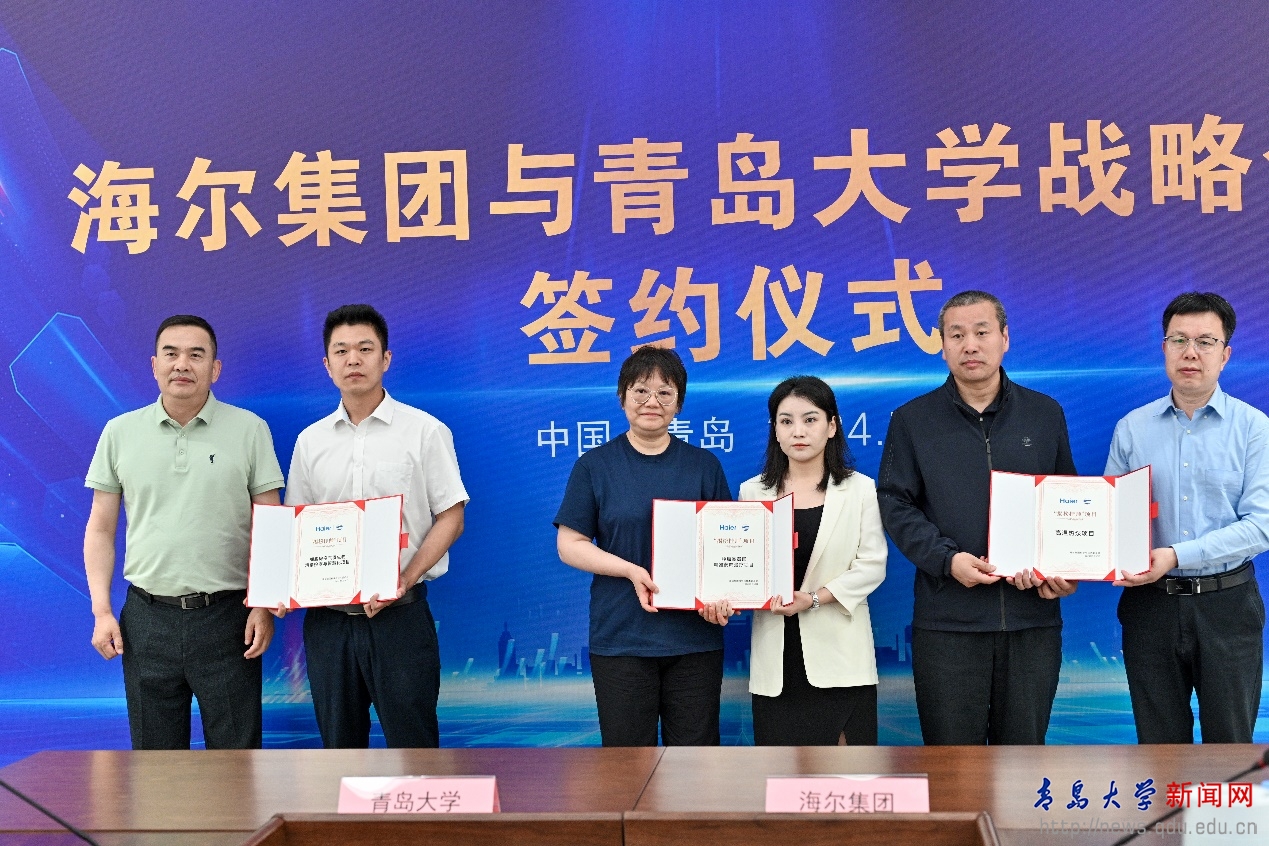 會上,在胡金焱、魏志強、李榮貴、周云杰、梁海山、譚麗霞的見證下,劉恩賢與張玉波簽署雙方戰略合作協議。李榮貴與海爾集團科學與技術委員會執行主任王曄為“海爾-青大聯合創新中心”揭牌,青島大學創新創業學院常務副院長王海榮和海創匯董事長劉長文為“海爾-青大創新創業教育實踐基地”揭牌。同時,海爾聯合創新中心“揭榜掛帥”項目發布,我校6位學者揭榜“高溫熱泵”“腫瘤類器官精準藥篩治療”“細胞房空氣微生物檢測與智慧化”“適老化智慧老年內在功能評估干預及慢病管理”“面向產業鏈協作的全局協同動態優化及智能推薦關鍵技術與系統”“自動色彩檢測工具系統”6個項目。