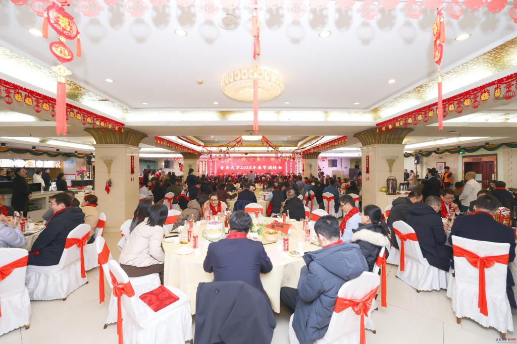 校黨委書記胡金焱致新春賀詞。他指出,2024年學校深入貫徹落實黨的二十大和二十屆二中、三中全會精神,全面落實教育強國和教育強省戰略,聚力轉型發展、創新發展、突破發展,繼往開來,積厚成勢,在高質量發展的道路上奮勇前進。他全面總結了學校過去一年在學科建設、人才培養、科學研究、社會服務、文化傳承創新、國際交流合作等方面取得的成績,通報了學校事業發展取得的標志性突破性成果。胡金焱表示,這一系列辦學成績的取得,離不開每一位青大人的傾情投入、接續奮斗,他代表學校向一年來辛勤工作在教學、科研和服務等各條戰線上的廣大教職員工表示衷心的感謝,向關心學校發展并為學校事業不斷做出新貢獻的老領導、老同志、老專家致以崇高的敬意和新春的祝福。胡金焱強調,2025年是學校全面落實第四次黨代會精神的重要一年,是實現“十四五”規劃目標任務的收官之年,也是全面提升辦學能力、加快推進“雙一流”建設的關鍵一年。學校上下要錨定目標、堅定信心,以敢打必勝的勇氣、久久為功的韌勁,踐行青大人的使命擔當,奮力開創高水平綜合性研究型大學建設新局面。
