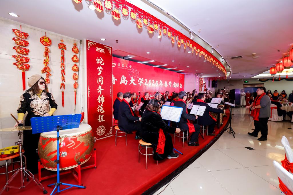 團拜會上,離退休工作處、團委、國際教育學院、藝術學院等單位組織離退休老同志和師生代表帶來精彩紛呈的節目表演,磅礴的旋律、動人的歌聲、優美的舞姿,不僅展現了青大師生昂揚奮進的風采,也共同表達了對新年的美好憧憬和殷切期望。