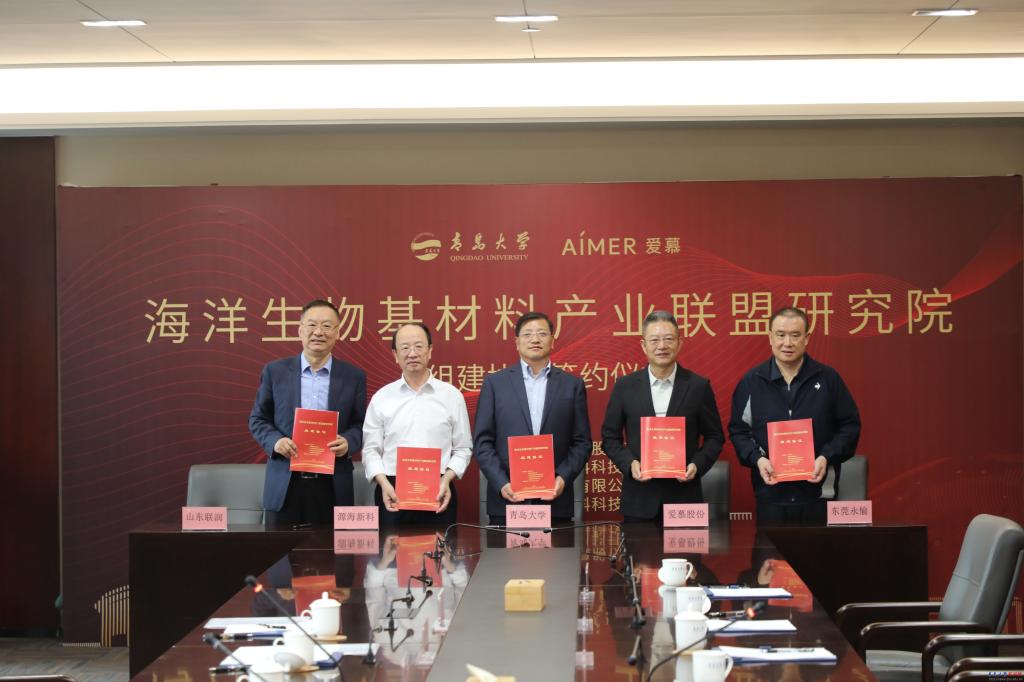 新聞網訊5月23日,我校與愛慕股份有限公司、青島源海新材料科技有限公司、山東聯潤新材料科技有限公司、東莞永愉針織有限公司聯合組建的海洋生物基材料產業聯盟研究院正式揭牌。校長魏志強出席揭牌儀式。愛慕股份董事長張榮明,中國服裝協會特邀副會長王軍,山東聯潤新材料科技有限公司董事長陳啟升,東莞永愉針織有限公司董事長劉慶堆,我校首席教授、海洋纖維新材料研究院院長夏延致參加揭牌儀式。儀式由副校長李榮貴主持。