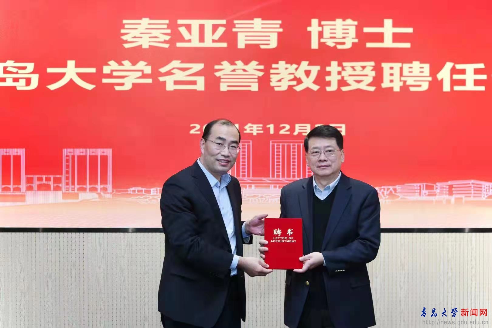 新聞網訊 12月2日上午,外交學院原院長、山東大學講席教授、比利時皇家學會外籍院士秦亞青博士受邀來校作題為“主流國際關系理論與美國國際戰略”的學術講座。校黨委常委、副校長孔偉金教授為秦亞青頒發了青島大學名譽教授證書。