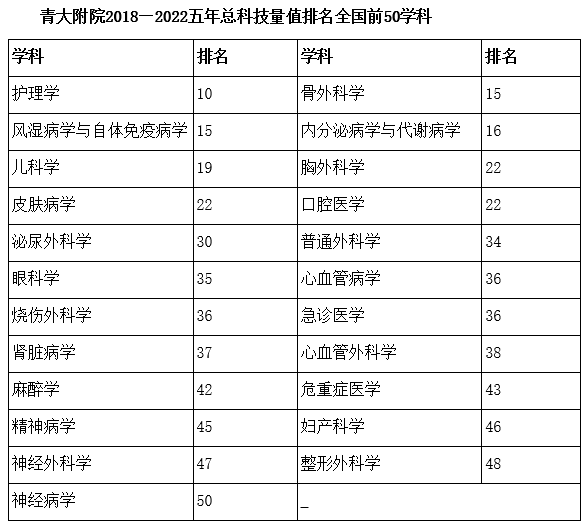 青島大學(xué)附屬醫(yī)院位列中國醫(yī)院五年總科技量值全國第47位