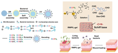 多藥耐藥菌嚴重影響急性皮膚傷口的愈合。本研究利用細胞膜色譜結(jié)合一株一物法多肽庫篩選抗菌肽,并利用抗菌肽和氧化右旋糖酐制備抗菌水凝膠。該水凝膠可有效促進上皮細胞的粘附,在殺滅傷口寄生細菌的同時促進傷口愈合。本研究發(fā)表在ACS Applied Materials & Interfaces上。我校博士生高鳳苑為本文第一作者,生物醫(yī)用材料與工程研究院為第一通訊單位。(全文鏈接:https://doi.org/10.1021/acsami.3c03069