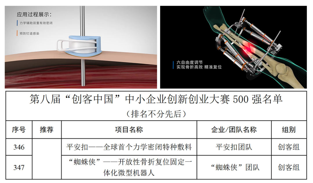 新聞網訊 近日,國家工業和信息化部信息中心發布第八屆“創客中國”中小企業創新創業大賽全國500強名單,青島大學腫瘤醫工研創新中心兩個原創項目:“平安扣——全球首個力學密閉特種敷料”、“蜘蛛俠——開放性骨折復位固定一體化微型機器人”成功入圍。