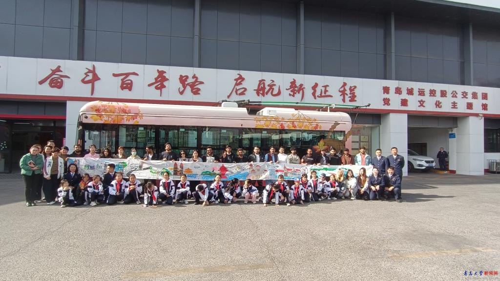 師生們還登上了了“楓葉紅2路電車姐妹班”的電車和傳承號電車,聆聽了2路電車班組的事跡和勞模故事,并與青島市新世紀小學的小學生們一同繪制10米長的公交主題畫卷,參與了公交文創(chuàng)集市的DIY活動。