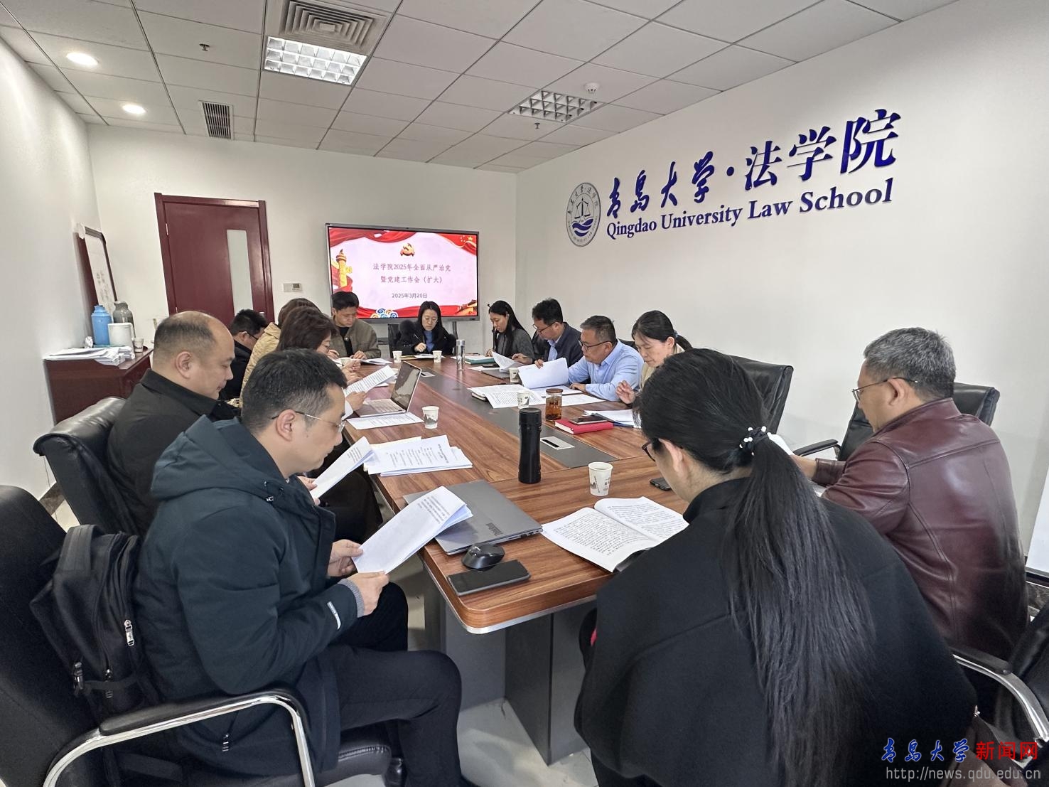 會議強調,全院上下要持續深入學習習近平總書記重要講話精神,深領悟全會精神內涵和實踐要求,不斷增強思想自覺、政治自覺、行動自覺。法學院黨委書記李建新從政治引領、思想建設、組織建設、紀律建設、作風建設、責任落實六個方面對法學院黨委2025年從嚴治黨工作提出了要求,推進全面從嚴治黨向基層延伸、向縱深發展,以全面從嚴治黨的扎實成效,奮力開創學院事業發展新局面。