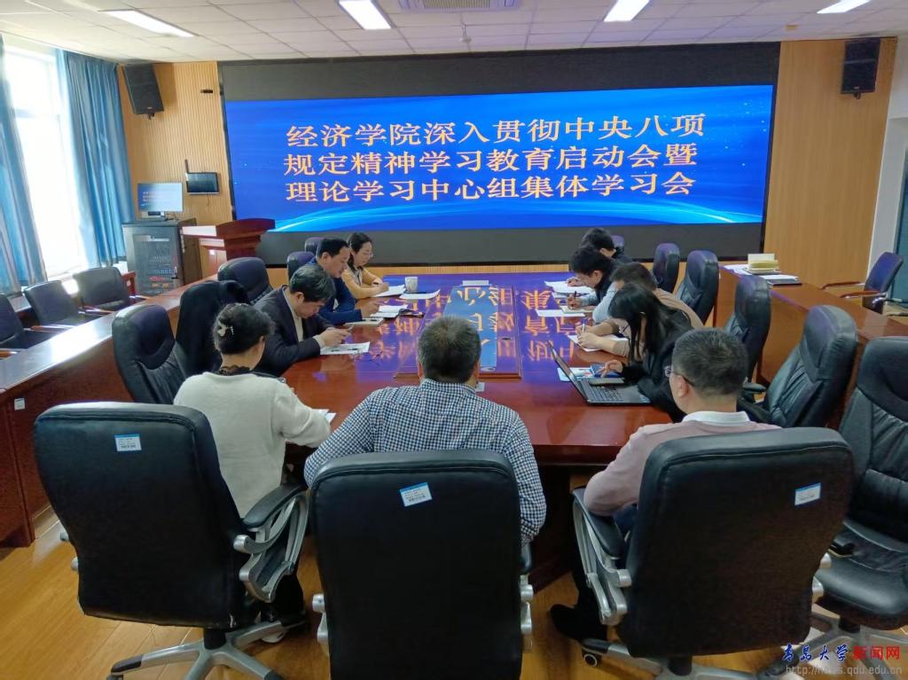 會議傳達學習了學校全面從嚴治黨暨黨的建設工作領導小組(擴大)會議精神,研究部署了《經濟學院深入貫徹中央八項規定精神實施方案》,學院開展深入貫徹中央八項規定精神學習教育正式啟動。