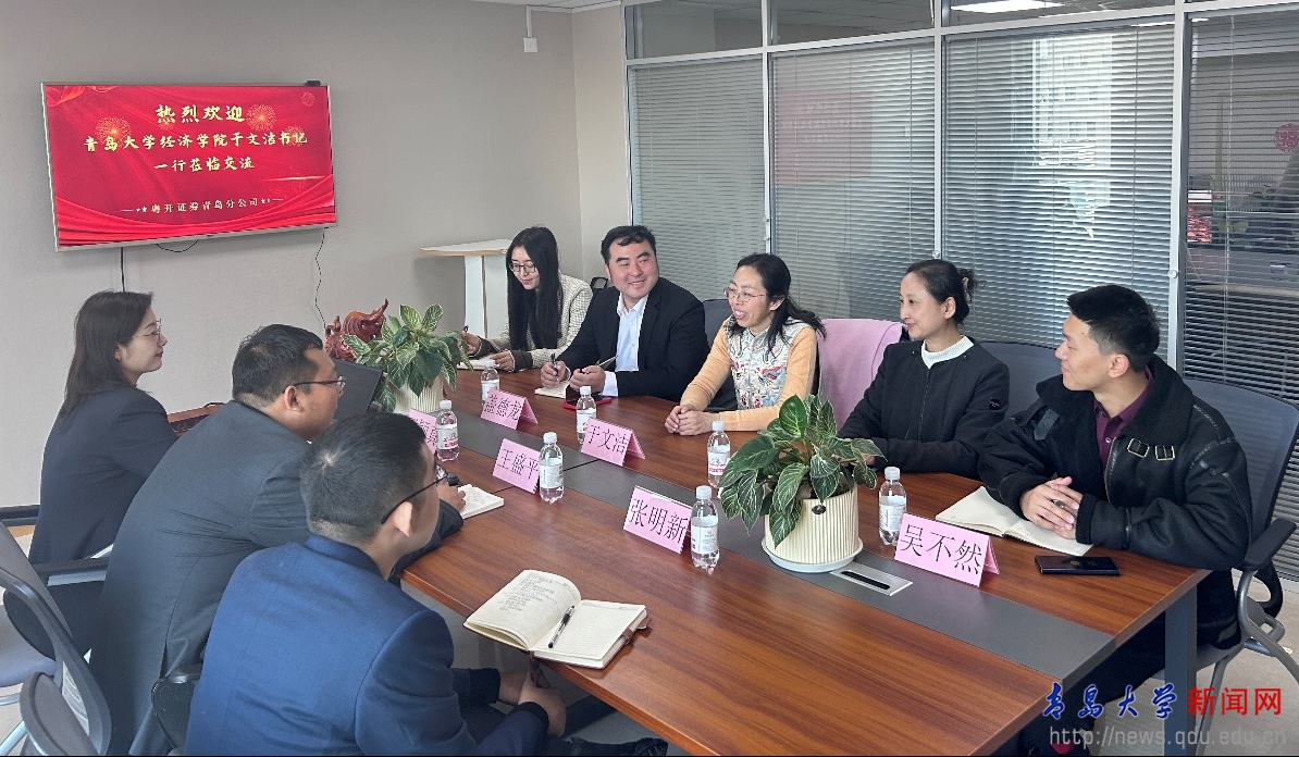 于文潔介紹了經濟學院的基本情況、專業設置和培養優勢。她表示,學院非常注重與企業的合作,希望通過此次“訪企拓崗”活動,進一步加深與粵開證券股份有限公司青島分公司的交流與合作,為學生搭建更多的實習實踐平臺,拓寬就業渠道。雙方還就校企合作的具體形式、人才培養的具體措施、優秀學生的實習就業等問題進行了深入的探討。