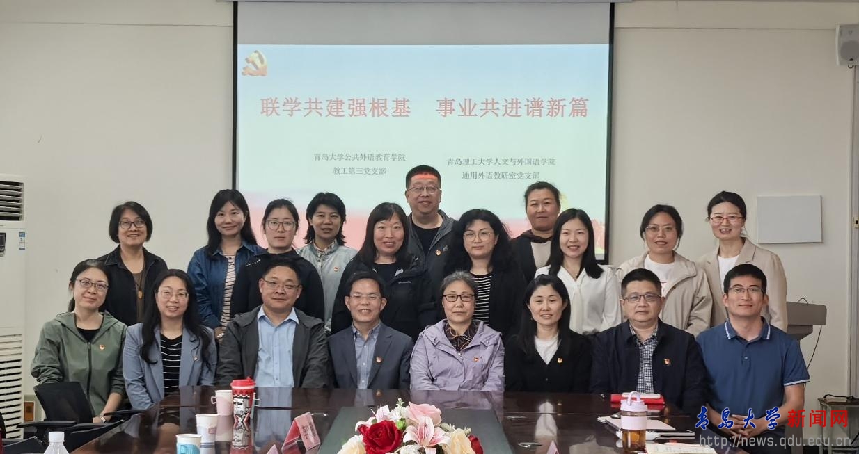 新聞網訊 5月15日下午,公共外語教育學院教工第三黨支部赴青島理工大學人文與外國語學院與通用外語教研室黨支部開展了“聯學共建強根基 事業共進謀新篇”支部共建活動。