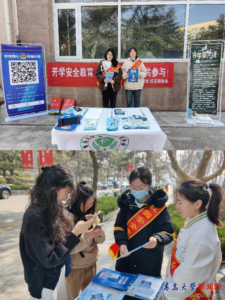 3月15日,我校安防協會志愿者們在浮山校區仁園餐廳前舉行“開學安全教育第一課,你我共參與”宣傳教育活動。現場以播放朗朗上口、通俗易懂的“反詐口訣”拉開了活動序幕。