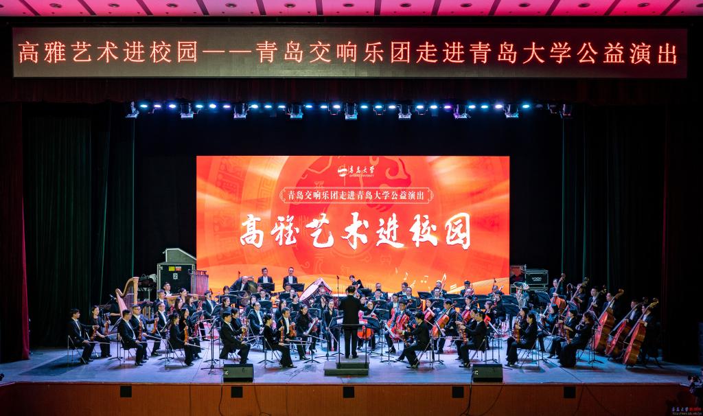 新聞網訊 4月30日下午,由學校黨委宣傳部主辦、校團委承辦的“高雅藝術進校園”音樂會在青島大學劇院順利舉辦。學校特邀青島交響樂團為全校師生帶來一場豐富的聽覺盛宴,近距離感受了高雅藝術的獨特魅力。校直各部門及青島交響樂團主要負責人與七百余名師生代表共同觀看了演出。