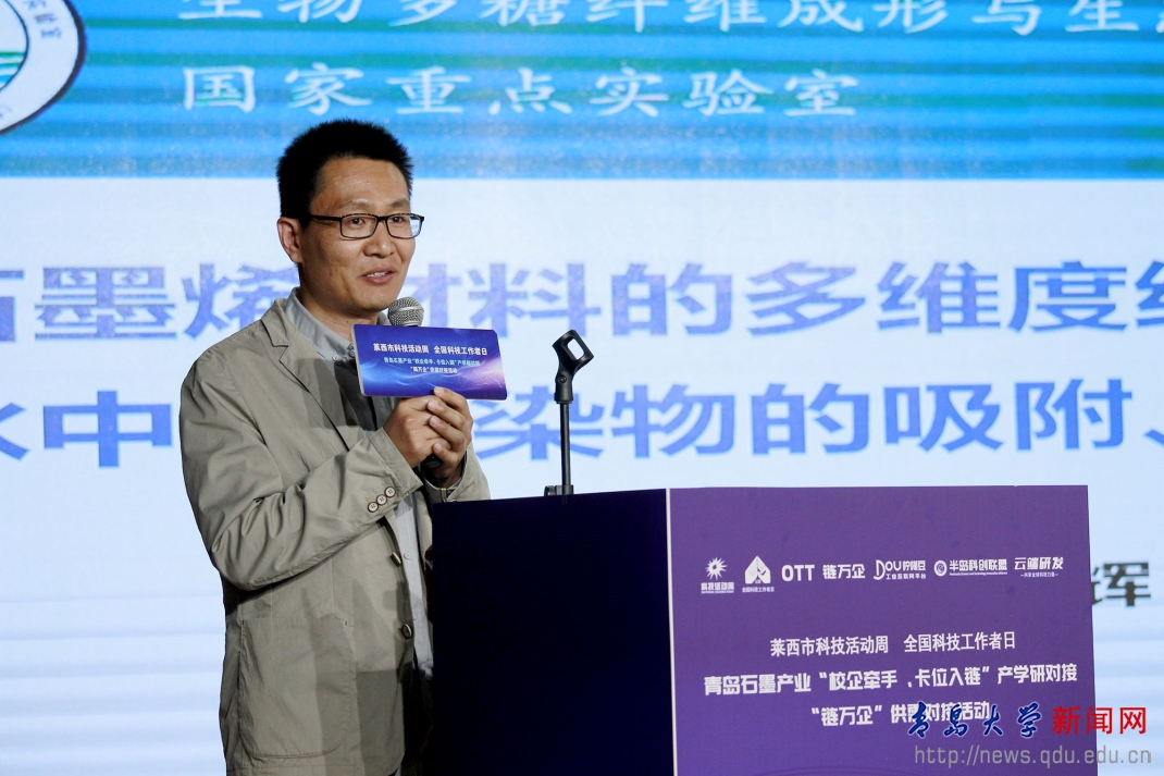 隨后,陳龍副教授就石墨烯材料的多維度結構設計及其對水中微污染物的吸附、過濾性能研究進行成果及項目路演。