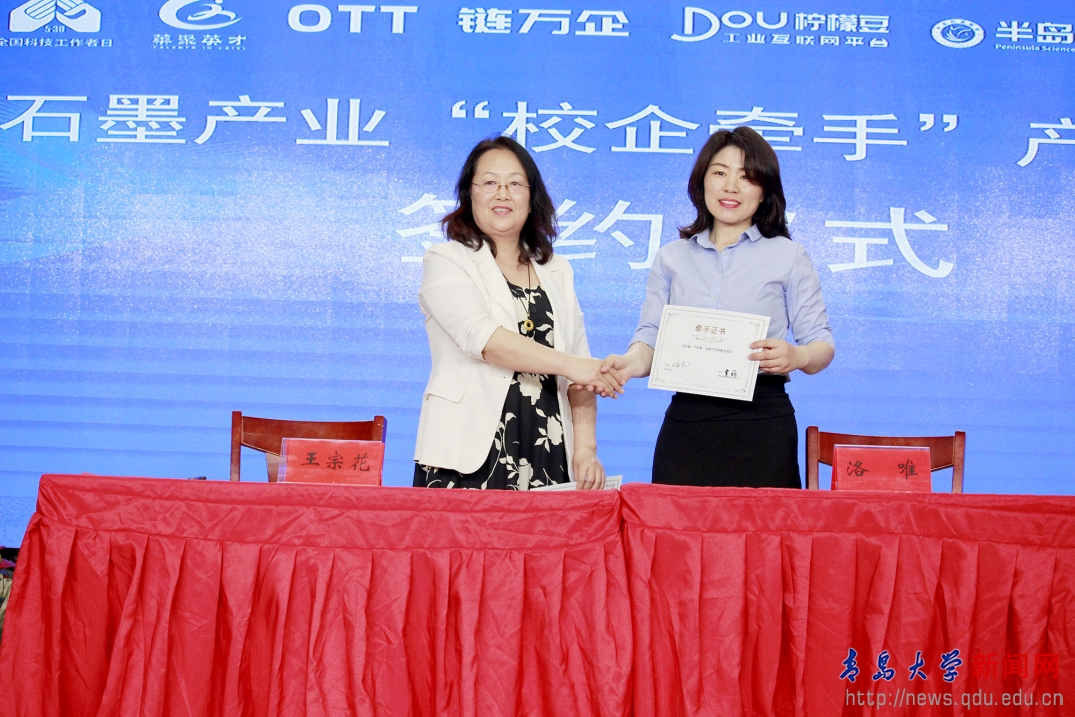 活動現場,青島洛唯新材料有限公司與王宗花教授進行校企現場“牽手”,通過平臺“結對子”,建立“朋友式”緊密合作關系。