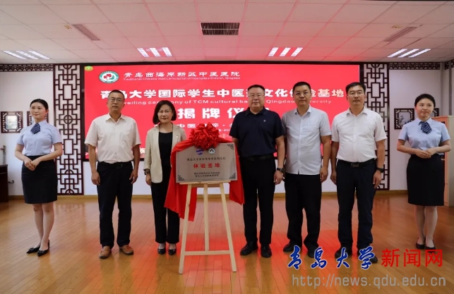 新聞網訊 6月18日下午,我校與黃島區中醫醫院合作共建國際學生中醫藥文化體驗基地揭牌儀式暨“共享中醫精粹·共赴健康深藍”文化體驗活動在黃島區舉行。國際教育學院副院長畢曉芬、青島西海岸新區衛生健康局副局長劉新、青島西海岸新區中醫醫院院長周雷升、副院長丁剛和共同為基地揭牌。