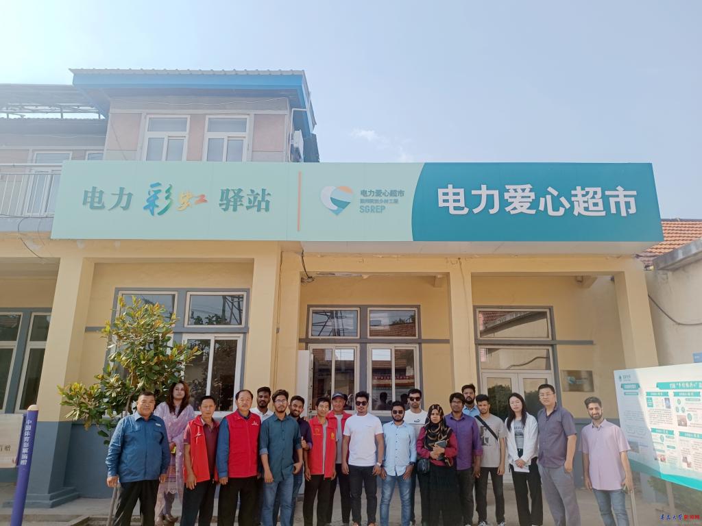 在平度市“國網助力鄉村振興示范村”云山鎮云和村,留學生們參訪了“村網共建”電力便民服務點、電力彩虹驛站、電力愛心超市以及國家電網捐贈的光伏發電設施,并在鄉村振興農民電力學校大講堂學習了解了安全用電常識、電費電價知識。