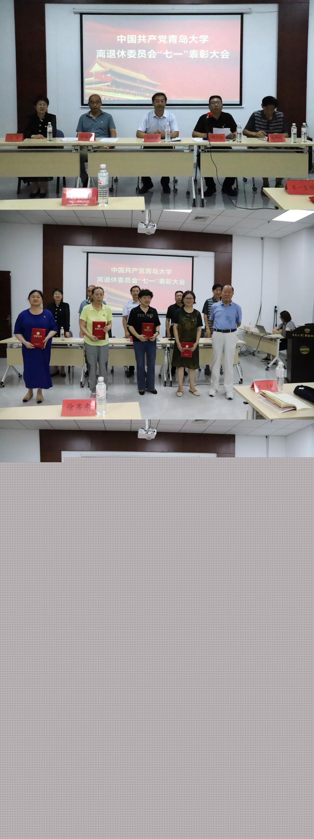 新聞網訊 7月15日上午,離退休黨委在浮山校區離退休黨建活動室舉行“七一”表彰大會。離退休黨委書記、處長宋佐東出席會議并講話,會議由離退休黨委副書記、副處長周志強主持,離退休黨委副書記、副處長張安勇宣讀《中共青島大學離退休委員會關于表彰離退休優秀共產黨員、優秀黨務工作者、先進基層黨組織的決定》。經離退休各支部嚴格評選,離退休黨委研究,決定授予遲萬慶等102名同志“青島大學離退休優秀共產黨員”榮譽稱號,陳其增等67名同志“青島大學離退休優秀黨務工作者”榮譽稱號,授予離退休第二黨支部等8個黨支部“青島大學離退休先進基層黨組織”榮譽稱號。會上,對獲獎代表進行了頒獎。