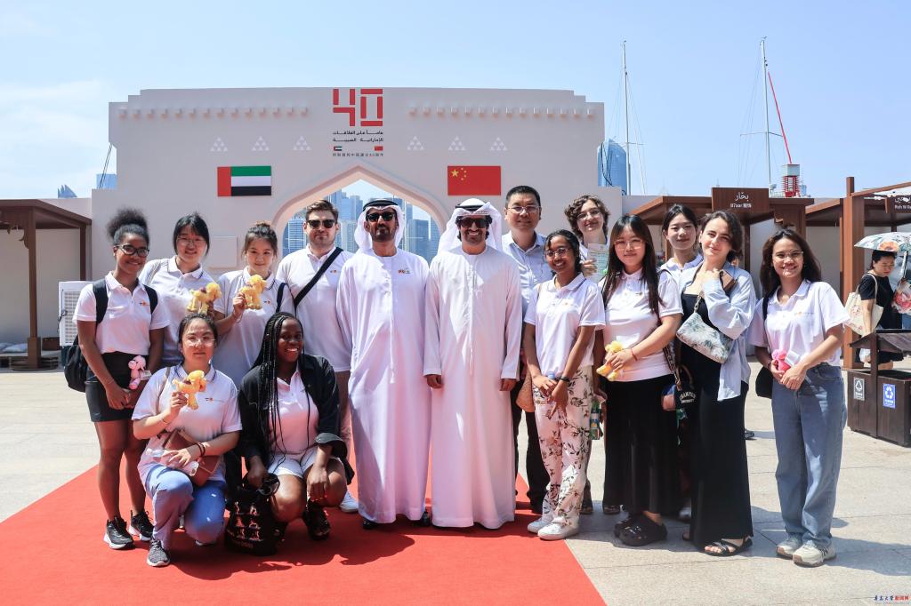 中外大學生們還參觀了由阿聯酋駐華大使館主辦的中阿建交40周年成就展,展區深入展示了兩國穩固且多元的雙邊關系發展歷程,以及在經濟、貿易、文化、政治和外交等多個領域取得的建設成就。作為慶祝阿聯酋與中國建交40周年系列活動在中國的首站,備受矚目。阿聯酋地處歐亞非三大洲交匯點,是陸海絲綢之路交匯點和連接東西方的重要交通樞紐,也是中國在阿拉伯地區非常重要的貿易伙伴和投資目的地。參觀結束后,中外大學生們偶遇了阿聯酋駐華大使侯賽因·伊卜拉欣·哈馬迪先生,大使先生與社會實踐團隊成員們親切合影留念。