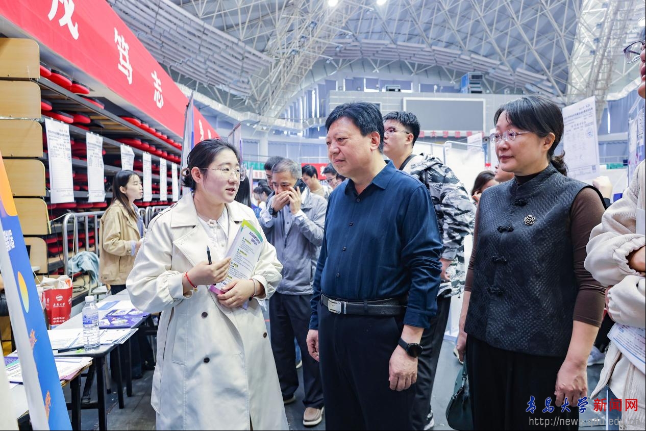 新聞網(wǎng)訊 10月13日,我校2025屆畢業(yè)生秋季大型供需見面雙選會(huì)在青浮山校區(qū)體育館順利舉辦。此次雙選會(huì)共吸引了近五百家用人單位入校招聘,提供就業(yè)崗位需求人數(shù)兩萬一千余個(gè),五千余名畢業(yè)生到會(huì)應(yīng)聘。校黨委常委、副校長陳濤到現(xiàn)場(chǎng)了解企業(yè)崗位需求、學(xué)生應(yīng)聘情況,與用人單位代表交流洽談。