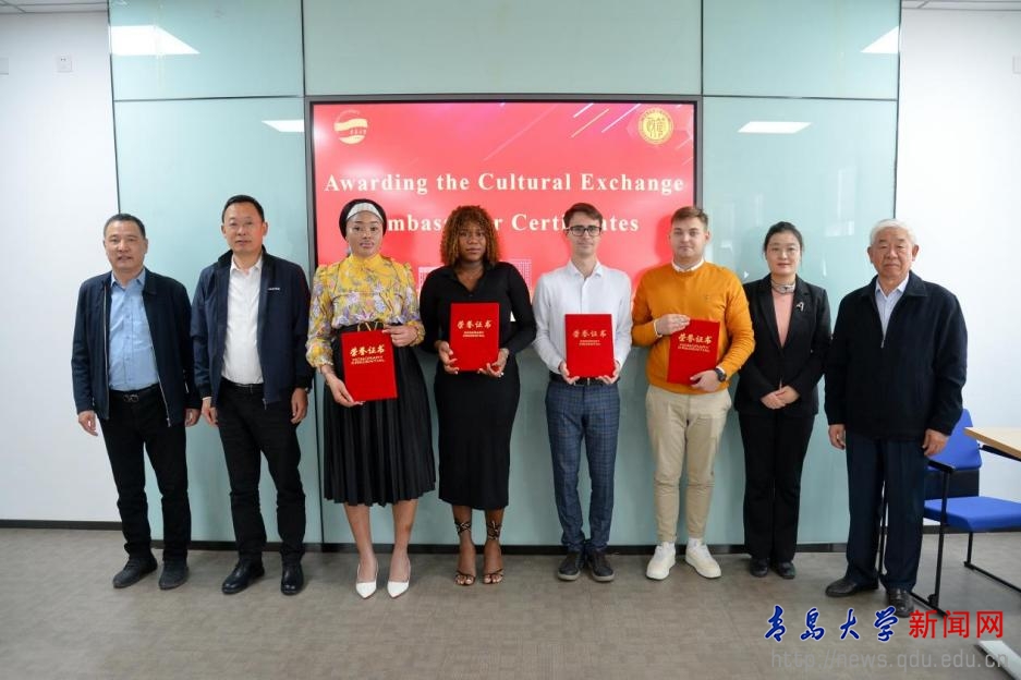 在開幕式上,劉恩賢為第二屆跨文化交流研究生論壇發表致辭,并與許元紅、尹文博、丁金光一同為2023級國際關系專業研究生Emmanuel Chidinma Blessing(尼日利亞)和2024級國際關系專業研究生Мирошниченко Леонид Александрович(白俄羅斯)、Черемисин Михаил(俄羅斯)和NwangwuEzinwanneBridget(尼日利亞)頒發“文明交流大使證書”,表彰四位留學生在積極融入校園文化,促進中外文化交流與融合方面做出的努力。