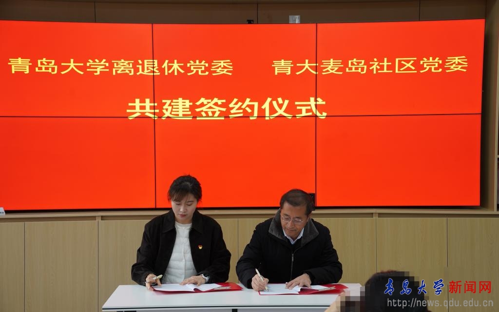 聯歡活動開始前,宋佐東、董媛媛分別致辭,簡要總結一年來的工作,對2025年合作共建提出期望,并簽訂青島大學離退休黨委與青大麥島社區黨委共建協議。青大離退休黨委十三黨支部書記孫明蘭與青大麥島社區黨委青大師院小區黨支部書記王堃簽訂黨支部共建協議。