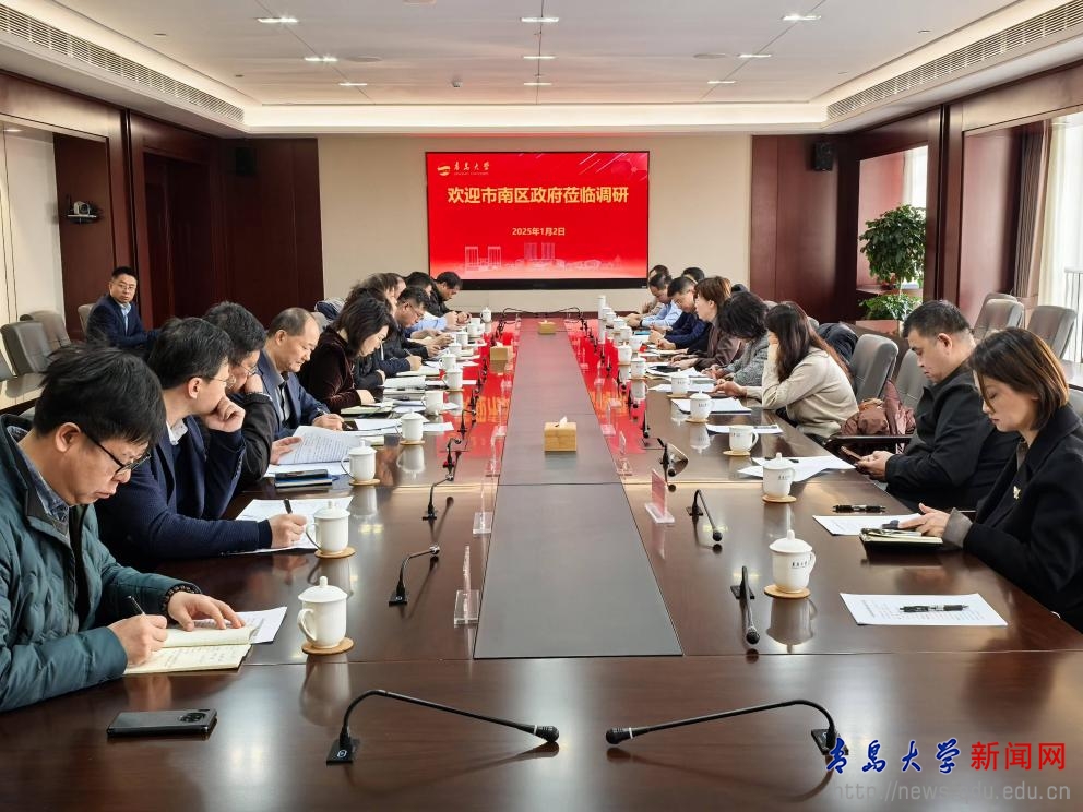 新聞網訊1月2日上午,市南區政府一行來我校調研交流。市南區政府黨組成員、副區長馮洪珍,副校長李榮貴,校黨委常委、副校長牛海濤參加座談會。
