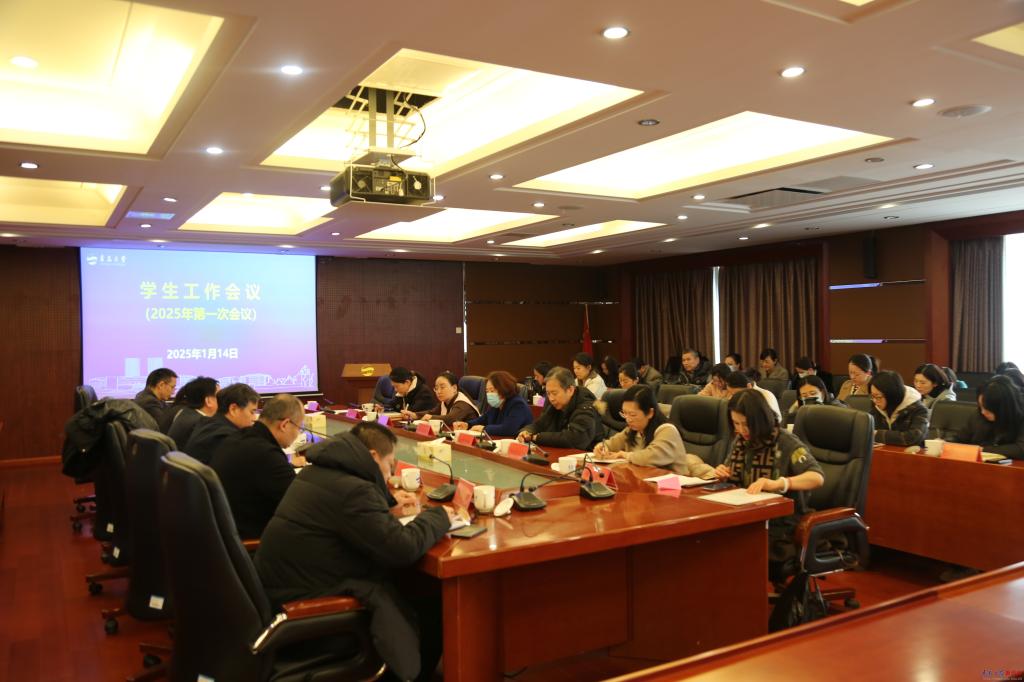 新聞網訊 1月14日下午,2025年寒假前學生工作會議在辦公樓407會議室召開,校黨委常委、副校長陳濤主持會議并講話。
