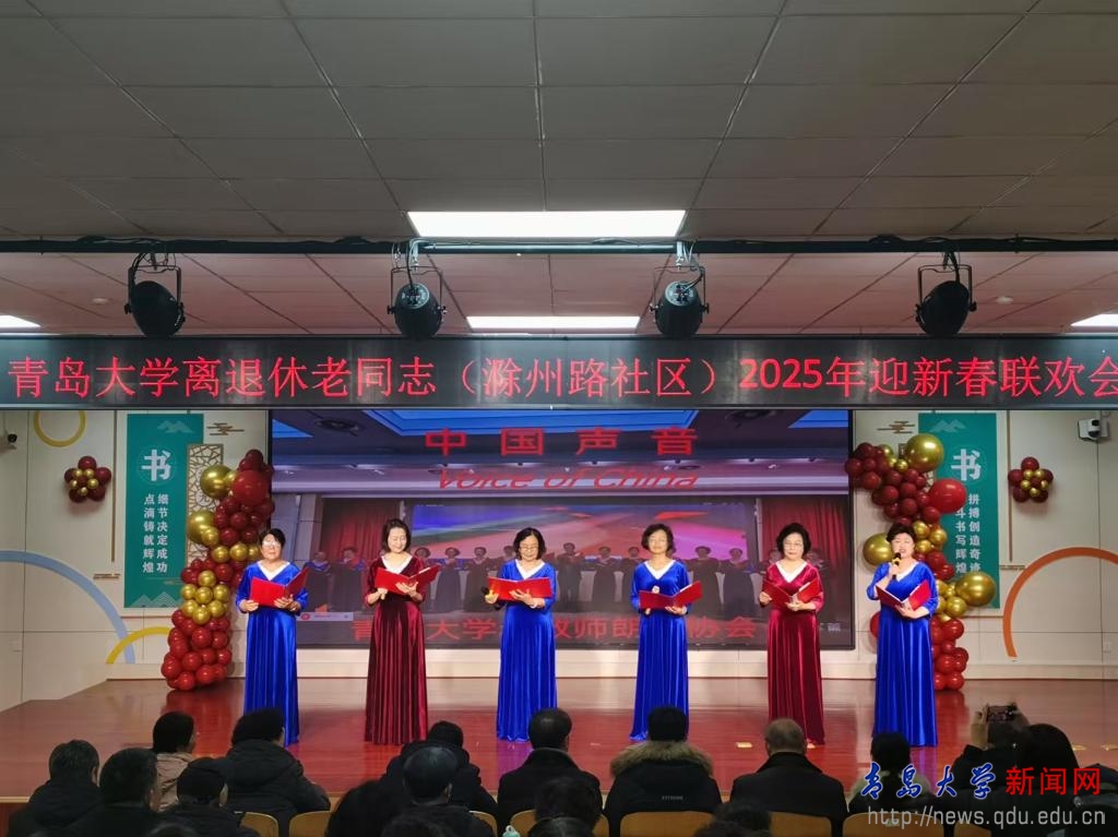 聯歡會演出了12個豐富多彩的節目,旨在弘揚中國傳統經典文化,傳播共筑中國夢的奮斗精神,讓大家感受到熱鬧喜慶文明幸福的濃濃的中國年味。青島大學離退休老教師朗誦協會表演了詩朗誦《中國聲音》《春來如期,只此青綠》《看夕陽》《善待暮年》;青島大學離退休老教師舞蹈四隊表演了舞蹈《牧區歡歌》;青島大學藝術學院的學生們表演了歌曲《映山紅》《等待》《共筑中國夢》,二胡獨奏《新賽馬》,鋼琴獨奏《茉莉花》,學生們現場與觀眾互動體驗——團扇創意制作受到觀眾們的喜愛;此次活動得到了青島大學藝術學院的大力支持,高水平的節目激發了觀眾的共鳴與共情;聯歡會在全體齊唱《歌唱祖國》中達到高潮。