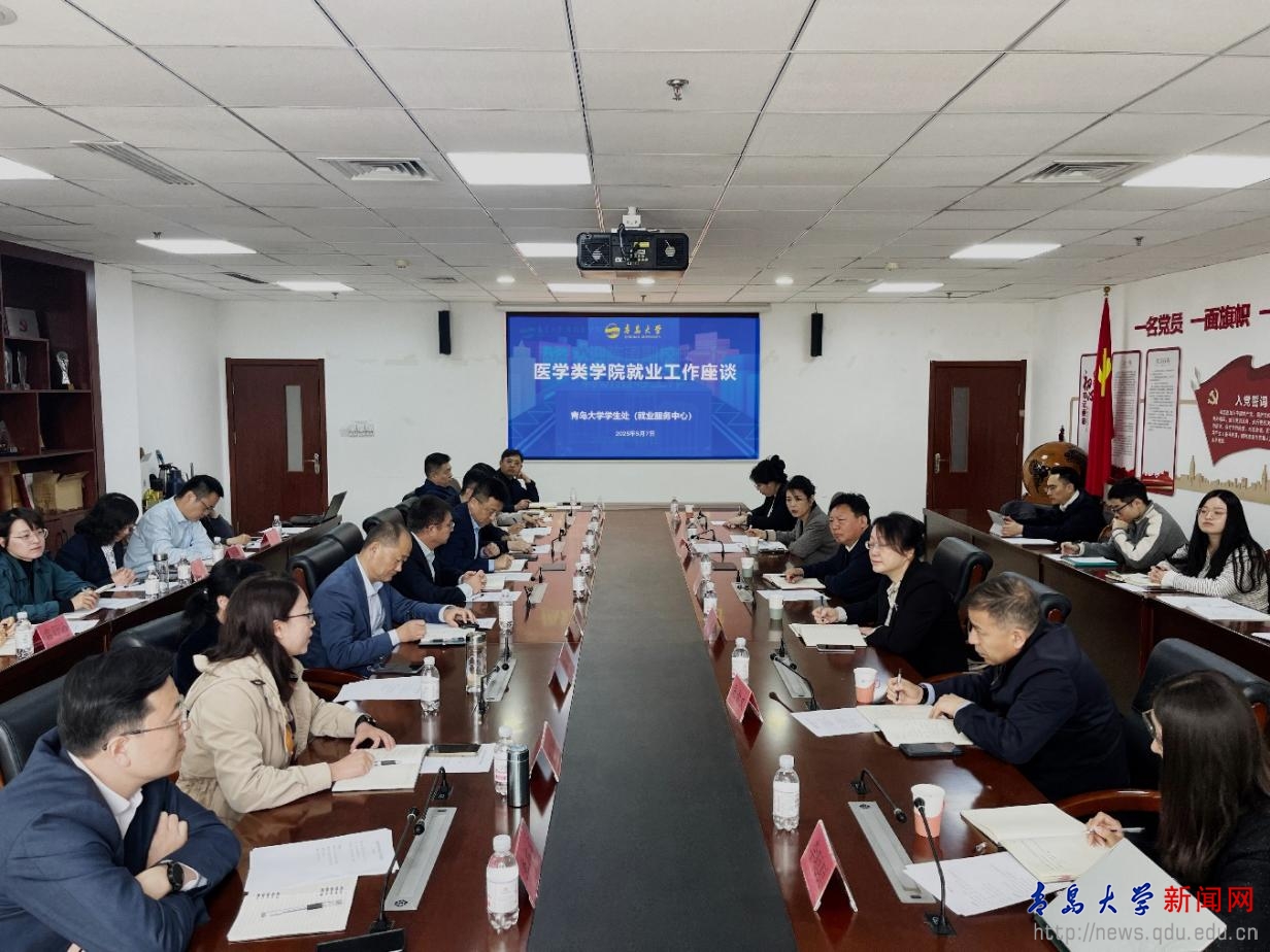 會上,學生工作處對醫學醫藥類學院近三年畢業生就業工作情況及特點進行分析,并通報了2025屆畢業生就業工作進展情況。青島醫學院等6個教學單位及臨床醫學院負責人作交流發言,重點匯報了學院2025屆畢業生就業工作的進展情況,并圍繞精準就業指導服務等維度提出了具體舉措。