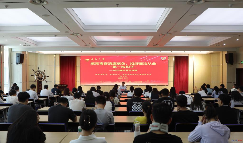新聞網訊 6月11日,我校2025年“畢業生青廉課堂”在會議中心404會議室舉行。校黨委常委、紀委書記,省監委駐青島大學監察專員徐大連出席并以《擦亮青春清廉底色,扣好廉潔從業“第一粒扣子”》為題作廉潔教育專題黨課,活動由校紀委副書記(分管日常工作)張利主持。